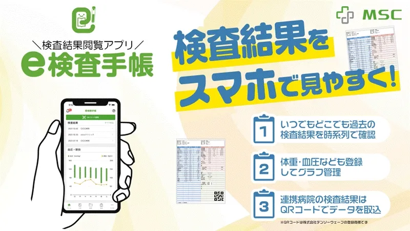 ・ 患者様に独自の新しいサービスをご提供 ・ 検査結果を時系列でグラフ表示することで視覚的に数値の変化を把握 ・ いつでもどこでも検査結果を確認 ・ 自分で検査結果を管理する事で健康意識の増進