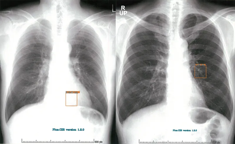 本製品は胸部単純X線写真の読影の際に医師に診断補助となる情報を提供するAIです。